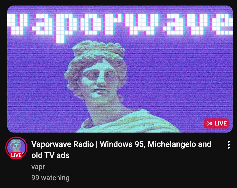 On this fresh account - watch a bunch of Vaporwave videos - the algorithm will tune itself to the nuances of your own preferences, specifically on the topic of Vaporwave. Want to include another flavour? Search UK Jungle music …it’ll keep churning out fresh videos, learning and noticing patterns about your interests and niches, and it’s really so helpful at generating a constant source of inspiration when focused this way!